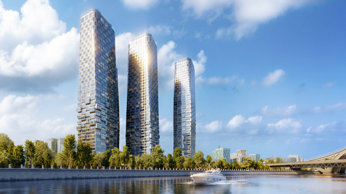 Премиальный комплекс из 5 небоскребов с бассейном на крыше, на набережной.